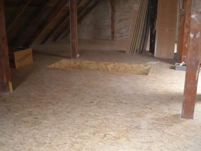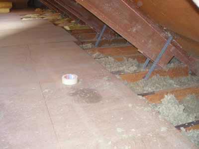 Nachträgliche Dämmung einer obersten Geschoßdecke mit Steinwoll-Granulat.